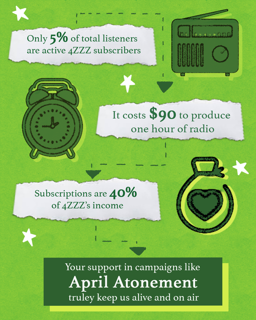 There has been so much happening in the world of 4ZZZ throughout April Atonement! In case you got a bit lost in the chaos, here’s a rundown of everything that’s been happening.